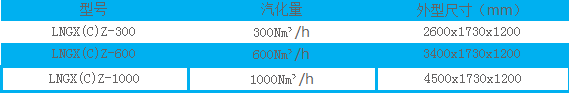 設(shè)計壓力:1.6MPa 設(shè)計溫度:-196℃ *大汽化量:8000Nm3/h 汽化介質(zhì):LNG、LPG、LO2、LN2